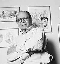 ![]() Dibujante entre otros personajes de: Ferrilo Mampato Máximo Chambonez Nick Obre Alaraco Agua de Boldo Dolchevita BiografÃa de Themo Lobos extraÃda del Sitio Oficial de Alaraco Themo LobosEntrevista realizada en 1987, perdimos la fuente, asà que quien sepa que nos diga por favor, para agregar los créditos. Hoy, cuando el comic en Chile renace marginal, new wave y subterráneo, cuando en el mundo reemerge explosivo y se hace moda cultural, los lectores de El Peneca en los años 50 y del Mampato en los 70 seguramente recuerdan muy bien esa firma en tinta negra al pie de las historietas que devoraban con entusiasmo: Themo Lobos. Lector voraz, arreglador de mundo en conversaciones de compadres, trabajador sin horarios ni oficinas, alaraco por sobre todas las cosas, este historietista y dibujante se ha hecho presente en los mundos de tres generaciones de niños: es el creador de Michote y Pericón, de Mampato y Ogú, de Ferrilo el Autómata, de Homero el Piloto, de Máximo Chambonez y de ese histérico Alaraco que desde las páginas del extinguido El Pingüino llegó a la televisión con el Jappening con Ja. No se resigna, Themo, a la extinción del comic chileno: desde hace algunos años edita Cucalón, revista de historietas infantiles en la que revive a sus más conspicuos personajes. ¿Y desde cuando que dibuja, Themistocles? Desde los siete años, calculo, y quizás un poquito antes. Al principio sólo copiaba dibujos, pero como a los 12 años me empecé a dar cuenta de que tenÃa que ser original, y comencé a hacer mis propias cosas. Eran dibujos serios, todavÃa, pero mi ambición era poder llegar a hacer monos como los de QuintÃn el Aventurero, historieta que leÃa con pasión en El Peneca. Mi mamá averiguó dónde podÃa estudiar, y asà llegué a la Academia de Bellas Artes. Lo pasé muy bien, pero perdà el tiempo, porque no era lo que buscaba. Después descubrà la Escuela de Artes Aplicadas. AllÃ, en los ratos libres, hacÃa monos en los bordes de los cuadernos. Asà nacieron mis primeros personajes: Ferrilo el Autómata y Homero el Piloto. ¿Y pensó entonces que esos monos marginales, de los bordes de los cuadernos, tendrÃan un destino tan masivo y popular? No, fÃjese. Aunque yo ambicionaba dibujar en una revista. Y eso ocurrió por necesidad, cuando en mi casa comenzó a haber dificultades para parar la olla. Yo, que todavÃa estaba estudiando, agarré mis monitos y comencé a recorrer empresas editoras. Caà bien parado. Un señor Alzola, que en ese tiempo era subdirector de La Nación, me contrató altiro con dos tiras para ilustrar la sección de avisos económicos. De ahà pasé a El Peneca, luego a Barrabases y finalmente a Mampato. También, trabajé en Cosquillas y en El Pingüino, de donde me echaron como tres veces porque los dibujantes siempre me escogÃan a mi para pedir aumento de sueldo. Mire, afortunadamente también se hacer letreros de micros, de esos que dicen "córrase al pasillo", "Si salió atrasado no es culpa del chofer", "Dios es mi copiloto", y asà nunca me ha faltado trabajo, porque la verdad es que ya no hay revistas de historietas en Chile, no hay, y veo con desesperación que el 90 por ciento de los colegas están cesantes ¿Y qué pasó? ¿ Porqué se acabaron las revistas de historietas? Aquà las revistas empezaron el año 25, y el mayor auge se vivió cuando se creó la editorial Quimantú. Entonces existieron cerca de 30 tÃtulos diferentes de historietas, y de cada una se vendÃan entre 50.000 y 100.000 ejemplares. HabÃa de todo: tiras cómicas, de aventuras, de guerra, de terror, infantiles... Todas esas revistas desaparecieron el año 73. Subsistió sólo Mampato, que era de la editorial Lord Cochrane. Duró hasta el 77, pero iba de mal en peor. De un tiraje de 100.000 ejemplares en su mejor época, bajó a 7.000. Entonces, a la Lord Cochrane le ofrecieron la impresión de la guÃa telefónica, y entre imprimir una revista que vendÃa tan poco e imprimir la guÃa, prefirieron la guÃa y cortaron la revista de un dÃa para otro. Cuando Mampato terminó, desaparecieron las revistas infantiles en Chile. ¿Y las revistas de historietas y de chistes para adultos? La única que quedaba era El Pingüino. Sucumbió por la baja del poder adquisitivo. ¿Y la televisión? No hay una especie de leyenda negra que dice que la televisión está destruyendo el comic. Eso no es asÃ. Mire lo que ocurre en los paÃses europeos, en Estados Unidos, en Argentina: ¡nunca se habÃan vendido tantas historietas como ahora! Lo que ha matado al comic en Chile es el temor de los editores a invertir en revistas que piensan que no se van a vender. ¡pero están equivocados! Yo sé que la gente comprarÃa revistas de historietas. Lo que ha pasado con Cucalón es interesante en este sentido. Estamos vendiendo. Y la respuesta del público es sorprendente. Llegan cartas enternecedoras... ¿Qué perdemos al no tener historietas? Un montón de cosas. En primer lugar, se desperdicia un instrumento didáctico maravilloso. Está demostrado que la televisión no sirve para enseñar a leer, y los niños aprenden a leer con mucha más facilidad hojeando historietas que con un silabario. Es fantástico lo que ocurre cuando un niño descubre que el "globito" blanco de la historieta es el habla, el idioma. ¡Se fascina! El niño se identifica con los personajes, y si la historieta está hecha con seriedad, bien documentada, puede incluso aprender historia, ciencia, geografÃa. Lo otro que se pierde, y que es muy grave, es la posibilidad de ejercitar el humor. Cuando el humor no se ejercita, aparece la amargura, la negrura, el humor negro y el odio. El humor casi siempre implica crÃtica, y hoy por hoy eso no parece ser muy bien tolerado... El dibujante, claro, no se puede marginar de lo contingente. La gente tampoco puede perder su capacidad de crÃtica. Mire a los jóvenes de hoy. Ellos, en su amor a la historieta, se ven obligados a hacer cosas underground, cosas s