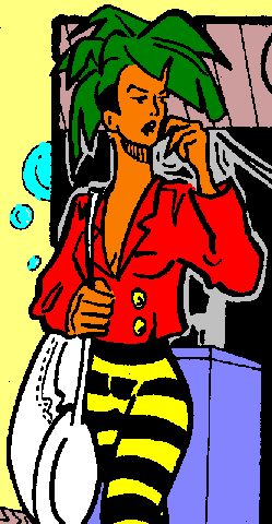 - Y tus dibujantes favoritos ? - Sin duda alguna, mis preferidos son Mauricio (Yo-Yo) y Lautaro Parra. - La nena, que hoy no pudo venir, tiene que ver mucho con Karto? Cuéntanos un poco de ella. - Hace tres años que estamos juntos, desde entonces que hacemos comics, casi nos juntamos para eso... La Nena es actriz y escribe guiones, como de cine. Lo que hacemos en el papel nos gustarÃa llevarlo al cine. Pero, por desgracia, el cine nacional no está al alcance de este tipo de proyectos por dos factores: censura y billete. Igualmente, el mundo del comics nos apasiona a los dos. - Quién es "Kiki Bananas" ? - "Kiki" es una modelo colombiana de 23 años. Su primer desfile fue a los 17. No tiene residencia fija, su casa es cualquier hotel. La Nena tiene que ver mucho con la creación del personaje. Le da vida y carácter. "Kiki" es definitivamente una mujer muy fuerte, es LA protagonista. asà quebramos el estereotipo femenino en el comic. "Kiki" hace su propia historia, sale a la calle a romper! es el descueve... |